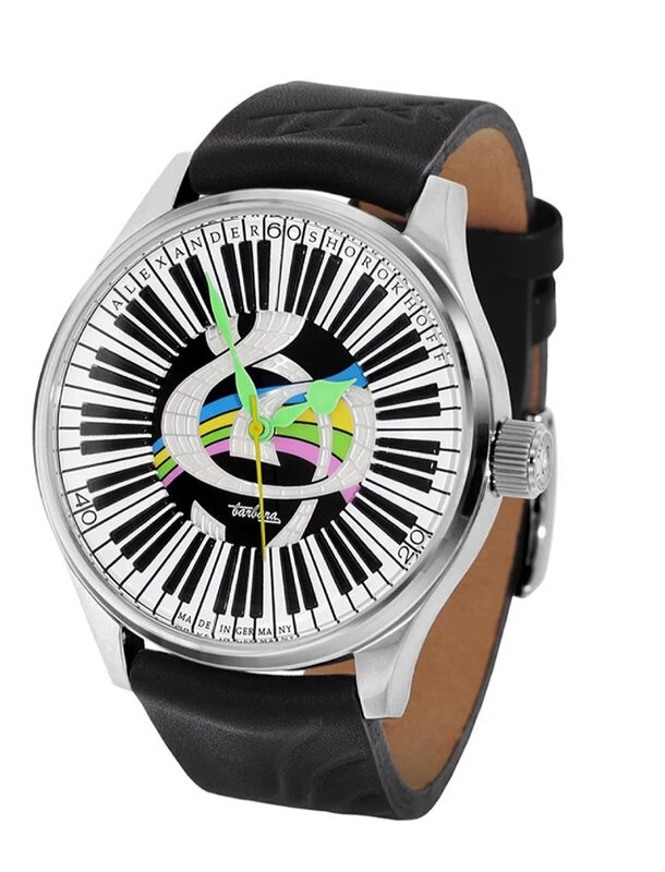 „Die avantgardistische Musik von Barbara hat mich in ihren Bann gezogen. Ich habe eine Uhr mit Orgeltasten um einen Notenschlüssel herum kreiert, der auf farbig-lebendigem Hintergrund den Rahmen geradezu sprengt. Das avantgardistische Design entspricht dem Werk dieser einzigartigen Künstlerin“, beschreibt Shorokhov seinen Entwurf bei der Vorstellung der Uhr auf der internationalen Schmuck- und Uhrenausstellung „BaselWorld 2015“.