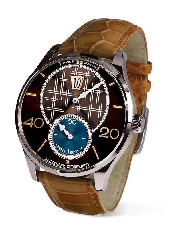 Die markanten Ziffern 20 und 40 bleiben erhalten und verleihen der Uhr den unverkennbaren „Alexander-Shorokhoff“- Stil. Die farblich passenden Krokodilarmbänder ergänzen die neuen durchdachten Kombinationen des Modells „Crossing 2“.