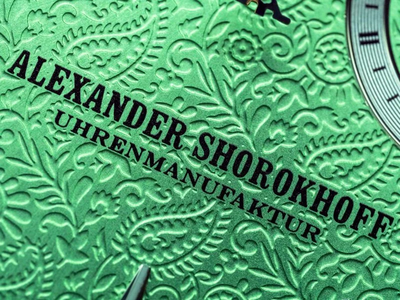 Das Modell „Spring“ wollte Alexander Shorokhov in ganz frischen Farben gestalten. Hellgrüne Farbtöne spielen dabei die Hauptrolle, so wie die ersten Knospen und Blätter, die anfangen zusprießen und zu neuem Leben zu erwachen. Aber nicht nur farbig, sondern auch dekorativ sollte dieses Modell sein. Deshalb wurde ein besonderes Zifferblattmuster in Paisley-Anmutung ausgearbeitet und neu geformt, welches den ersten Frühlingsgefühlen in vollsten Zügen entspricht.