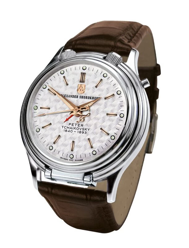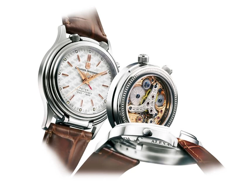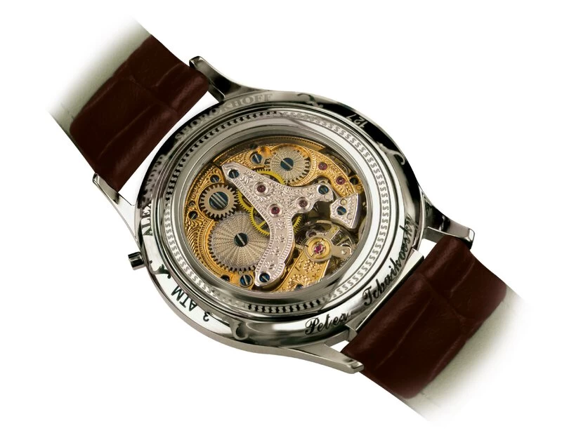 Für diese Uhrenreihe, die an den großen russischen Komponisten erinnern soll, wurde wegen der Weckfunktion ein ganz spezielles Uhrwerk ausgewählt und weiterentwickelt.