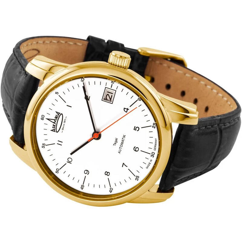 Die Askania Tegel ist eine Widmung an den Hauptstadtflughafen Berlin Tegel. Der Flughafen Tegel gehört seit den 1960er Jahren zur Hauptstadt und beeindruckt durch sein funktionelles, modernes und zeitloses Hexagon-Design. Die Askania Tegel vereint das funktionelle Design des Bauhausstils in einer eleganten, komfortablen Haptik mit einem klassischen Automatikwerk.