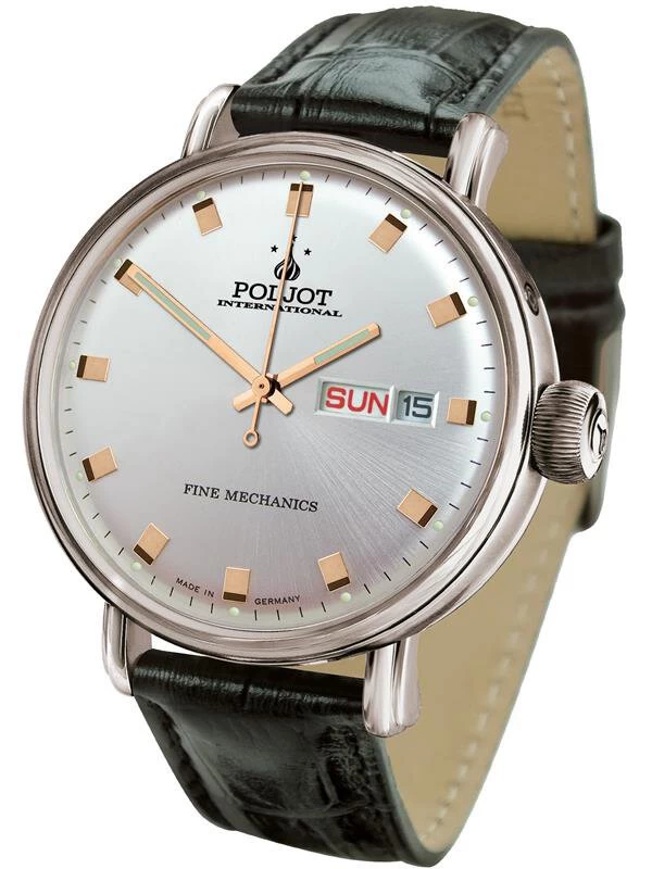 Automaticwatch“New Yaroslavl“with Day&Date, st.steel case, glass back, sapphire glass, silver dial, leather strap, box