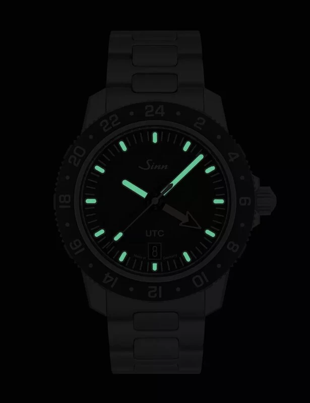 So können Sie mittels des beidseitig drehbaren und mit einer 24er-Stundenrastung versehenen Drehrings eine zweite Zeitzone einstellen. Damit ist eine Anpassung der Ortszeit in nur wenigen Sekunden möglich, ohne dass Sie den orangefarbenen UTC-Zeiger über die Krone verstellen müssen. Selbstverständlich können Sie auch die herkömmliche Einstellung des UTC-Zeigers mittels Krone nutzen und den Drehring in seiner Ausgangsposition belassen. Darüber hinaus kann der UTC-Zeiger in Pfeilform – bei Kenntnis des Sonnenstandes – zur groben Bestimmung der Himmelsrichtungen genutzt werden. Befinden Sie sich dabei auf der Nordhalbkugel, richten Sie das Zifferblatt horizontal aus und drehen die Uhr so, dass der 12-Stunden-Zeiger (ohne Sommerzeitverstellung) auf die Sonne weist. Der 24-Stunden-Zeiger deutet dann nach Norden.