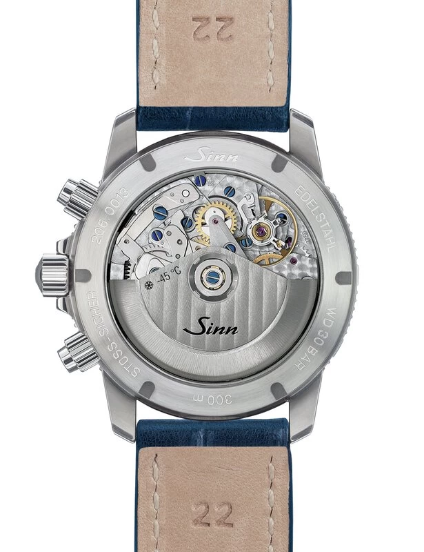 Dem Vorbild folgend, haben wir die 206 ARKTIS II mit einem blauen Zifferblatt mit Sonnenschliff ausgestattet. Um dem Original auch in anderer Hinsicht nahe zu kommen, haben wir die Optik verschraubter Drücker beibehalten. Ausgestattet mit unserem D3-System, ist eine Verschraubung der Drücker bei der 206 ARKTIS II allerdings nicht mehr notwendig. Die Chronographenfunktion lässt sich so barrierefrei nutzen und komfortabel bedienen.