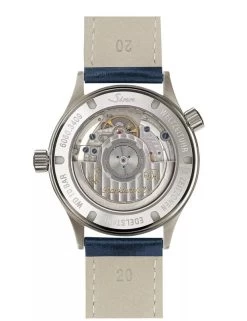 Die Konzentration auf Stunde, Minute, Sekunde, Datum und das satinierte Gehäuse aus Edelstahl betonen das sportlich-elegante Erscheinungsbild. Die Uhren der Modellreihe 556 sind ausgestattet mit einem Deckglas und einem Sichtboden aus Saphirkristall, so dass sich das filigrane mechanische Uhrwerk eindrucksvoll bewundern lässt.