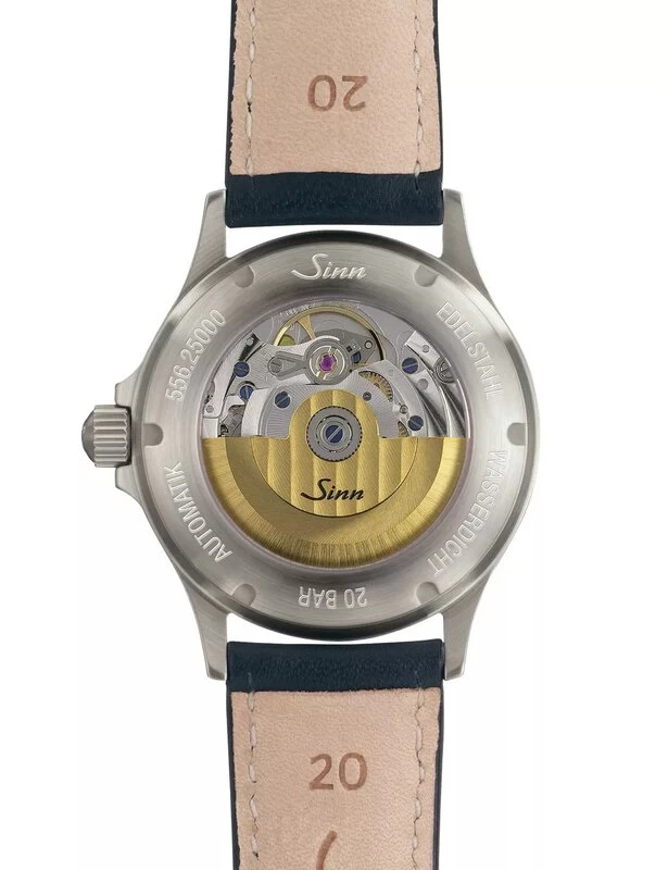 Die Konzentration auf Stunde, Minute, Sekunde, Datum und das satinierte Gehäuse aus Edelstahl betonen das sportlich-elegante Erscheinungsbild. Die Uhren der Modellreihe 556 sind ausgestattet mit einem Deckglas und einem Sichtboden aus Saphirkristall, so dass sich das filigran mechanische Uhrwerk eindrucksvoll bewundern lässt.