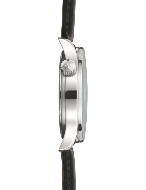 Eine klassisch-edle Anmutung mit hoher Wertigkeit vermittelt das mit Sonnenschliff veredelte, schwarze Zifferblatt. Der tiefe, seidenmatte Glanz bringt dabei die rhodinierten Appliken eindrucksvoll zur Geltung. Sie sind nachleuchtend belegt und werden einzeln von Hand gesetzt.