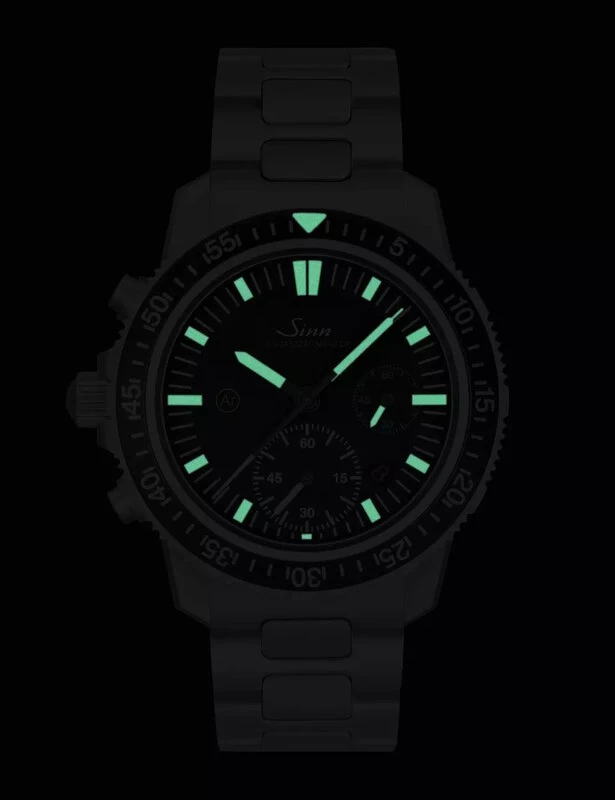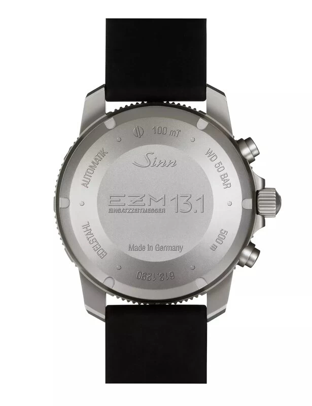 So weiß der EZM 13.1 genau, worauf es beim Einsatz ankommt: Konzentration auf das Wesentliche in Verbindung mit hervorragender Ablesbarkeit. Dazu haben wir das SINN-Chronographen-Uhrwerk SZ02 integriert, eine Werksmodifikation mit hohem Funktionswert: Für ein schnelles, intuitives Ablesen der gestoppten Minuten hat der EZM 13.1 bei sechs Uhr einen 60-Minuten-Zähler – anstelle eines (sonst üblichen) 30-Minuten-Zählers. Er besticht durch eine optimierte Zifferblattgestaltung. Zugunsten einer klareren Ablesbarkeit entfallen beim EZM 13.1 die arabischen Ziffern. Die technisch-funktionale Ausrichtung wird dadurch optisch verstärkt.