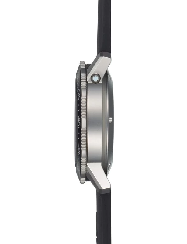 Auffallend ist weiterhin die Anordnung der Krone auf der linken Seite des perlgestrahlten Gehäuses. Diese Anordnung gewährleistet mehr Bewegungsfreiheit und verschafft der Krone eine besonders geschützte Position. Ausgestattet ist diese instrumentelle Uhr mit der Ar-Trockenhaltetechnik für eine erhöhte Funktions- und Beschlagsicherheit, einem Magnetfeldschutz bis 80.000 A/m und der Temperaturresistenztechnologie, die für Funktionssicherheit im Temperaturbereich von –45°C bis + 80°C sorgt.