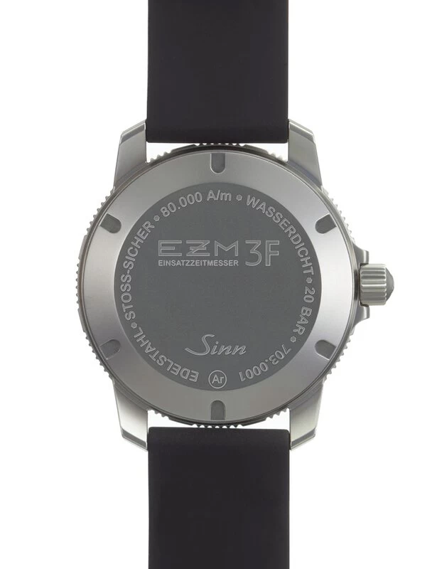 Der EZM 3F ist eine klassische Fliegeruhr, ausgestattet mit einem rückwärts zählenden Fliegerdrehring mit Minutenrastung. Zwecks besserer Ablesbarkeit trägt der Drehring als markante Hauptmarkierung ein nachleuchtendes Dreieck bei 12 Uhr. Er ist in beide Richtungen drehbar.