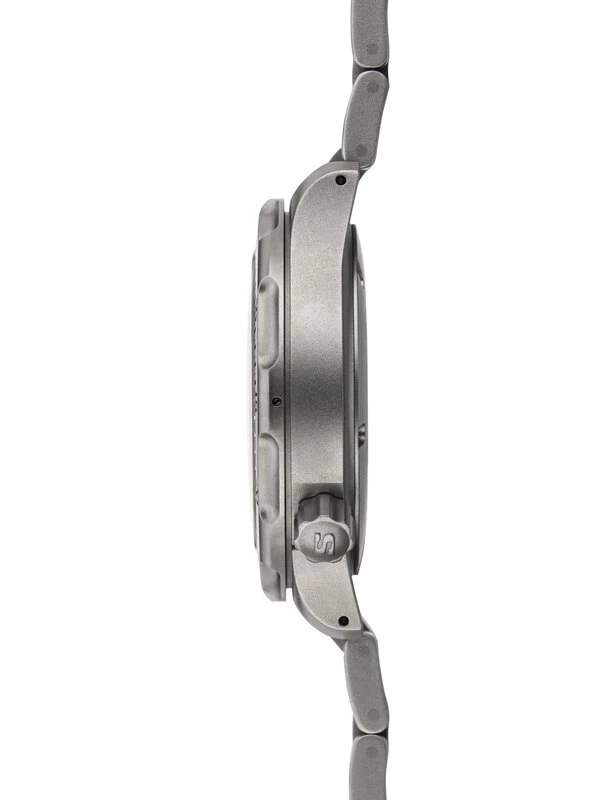 Dass sich eine so maskuline Uhr wie die T50 nicht nur im Wasser wohl fühlt, dürfte auch daran liegen, dass Gehäuse und Boden aus hochfestem Titan bestehen. Die Gründe sind einleuchtend: Hochfestes Titan besitzt eine außerordentlich hohe Salzwasserbeständigkeit und ist ausgesprochen robust. Als Zugabe erweist sich der hohe Tragekomfort – nicht zuletzt wegen des geringen spezifischen Gewichts und weil Titan keine Allergien auslöst. Mit einem Durchmesser von 41 mm macht die T50 in jeder Situation eine tragbare Figur – ohne etwas von ihrer virilen Formgebung einzubüßen.