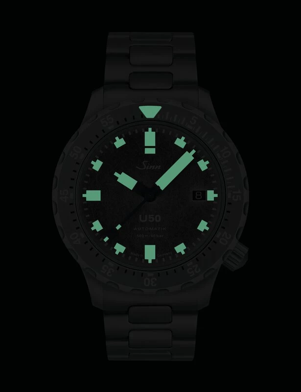Als robuster und präziser Zeitmesser wird die U50 DS von Uhrenliebhabern geschätzt. Motto: Es gilt maximale Zuverlässigkeit. Eingelöst wird dieses Leistungsversprechen durch eine sicherheitsrelevante Ausstattung. Zum Beispiel ein Gehäuse aus hochfestem, seewasserbeständigem deutschen U-Boot-Stahl. Experten wissen sofort: Die Uhr besitzt damit eine außerordentlich hohe Festigkeit und höchste amagnetische Güte. Der unverlierbar mit dem Gehäuse verbundene Drehring schützt vor dem Verlust von Merkzeiten. Und weil der Uhr unter Umständen einiges abverlangt wird, haben wir Gehäuse und Drehring im Sinne einer besonderen Kratzfestigkeit zusätzlich mit der TEGIMENT-Technologie ausgestattet.
