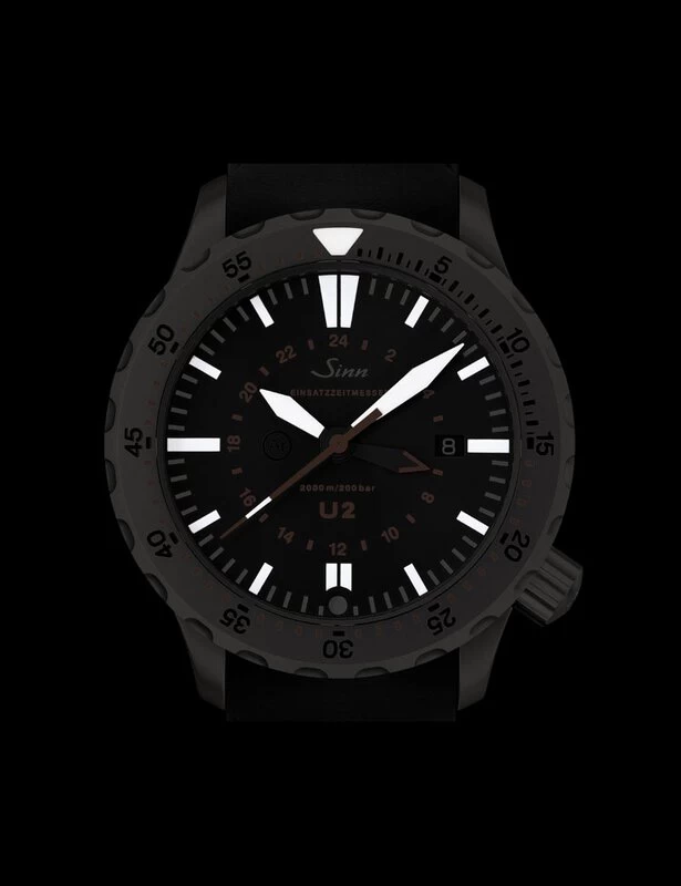 Die Taucheruhr U2 ist ein professioneller Einsatzzeitmesser – nicht zuletzt durch den original deutschen U-Boot-Stahl, der extrem seewasserbeständig und von höchster amagnetischer Güte ist. SINN-Spezialöl und eine angepasste Toleranzlage der Uhrwerksteile gewährleistet zu dem die Funktion dieser Taucheruhr in einem Temperaturbereich von minus 45 ºC bis plus 80 ºC.